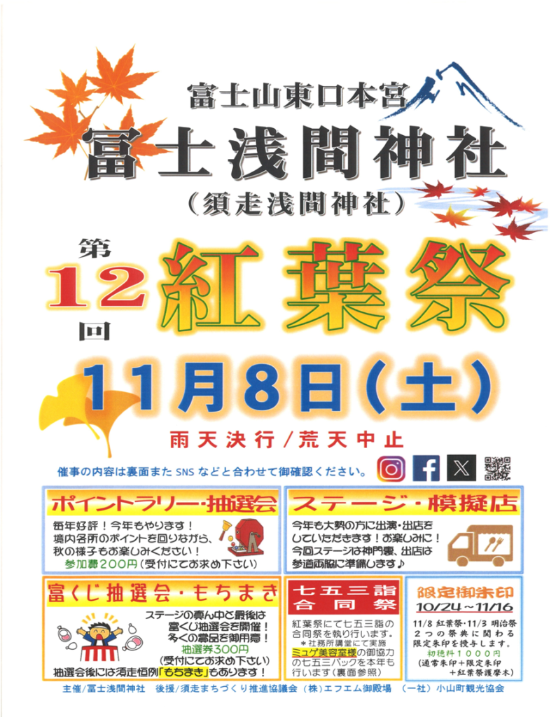 2025年10月29日 足柄古道をたずねてpart4開催のお知らせ(延期) 2025年10月28日 竹まりワークショップ 2025年10月24日 冨士浅間神社第12回紅葉祭 2025年10月22日 鮎沢川冬季キャッチ&リリース 2025年10月14日 豊門公園イベントお知らせ 2025年10月14日 富士マラソンフェスタ開催のお知らせ 2025年10月10日 おやま秋のレトロ散歩 2025年10月10日 「しずおか遺産」(富士山の清流が織り成した産業革命)特別見学会と講演会のお知らせ 2025年9月17日 富士学校開校 富士駐屯地開設71周年記念行事開催のお知らせ 2025年9月12日 「お山参りツアー 須走口五合目で御来光祈願、ミステリー散策」開催のお知らせ 2025年9月6日 足柄ふれあい公園マルシェ&ビアガーデン 2025年8月27日 第54回足柄峠笛まつり開催のお知らせ 1 2 … 8 次へ>>