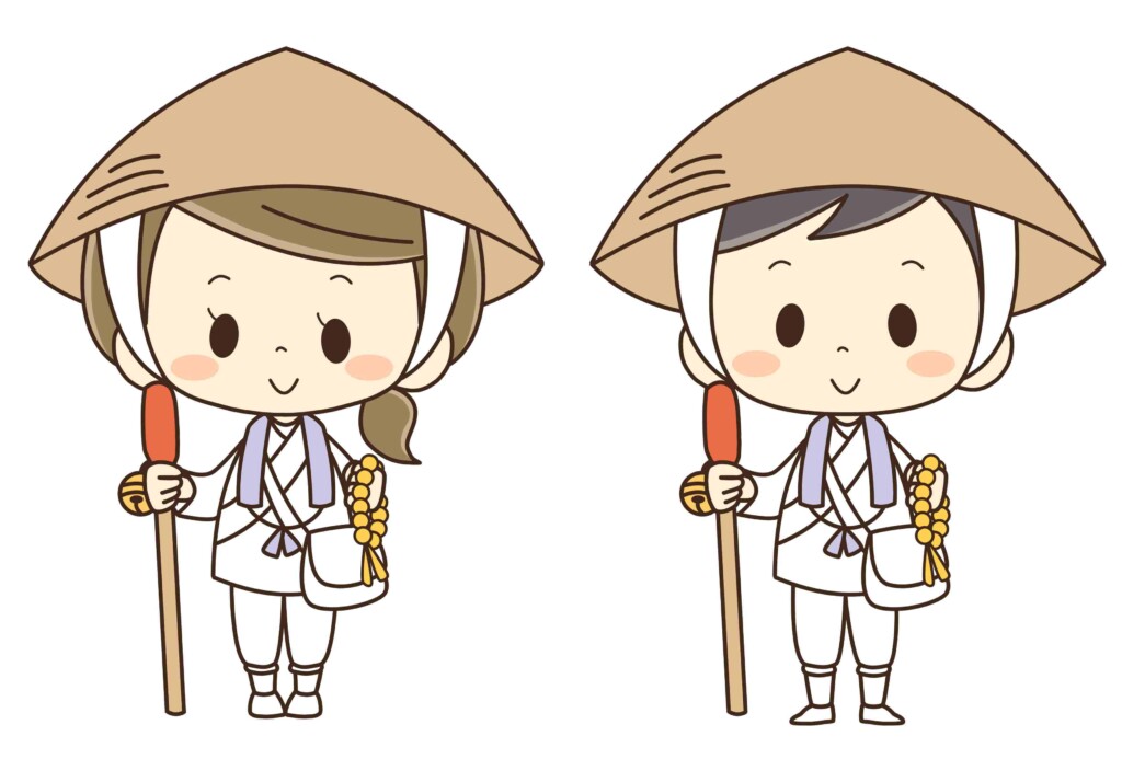 - 富士講の衣装(菅笠、白装束、杖)で写真を撮ろう!