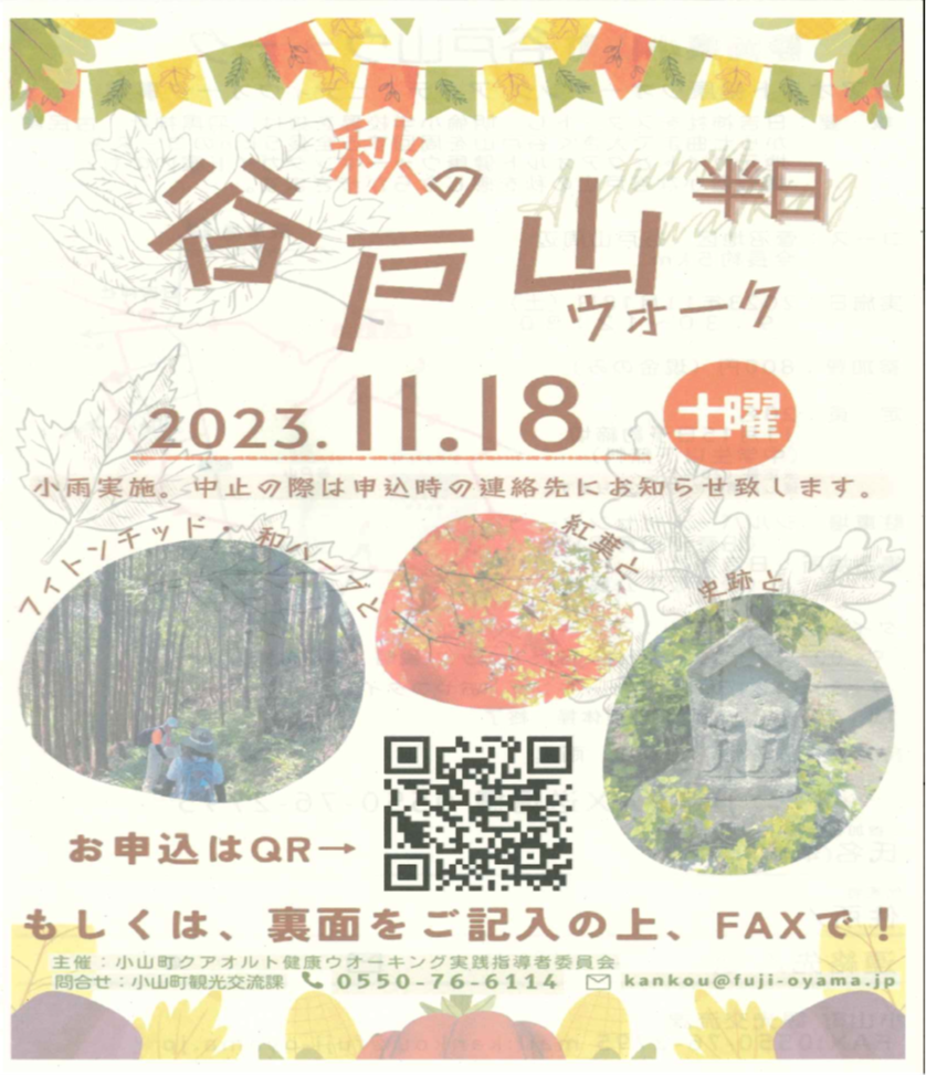 - 【問合せ】小山町観光交流課 電話0550-76-6114 ✉kankou@fuji-oyama.jp