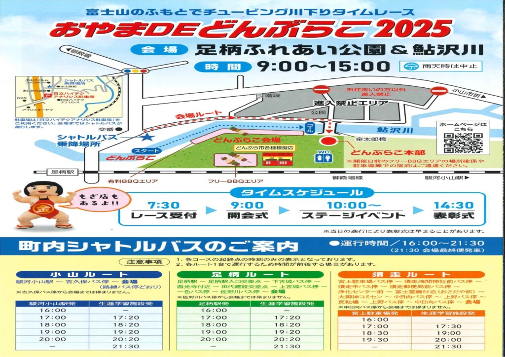 • (内容)◆おやまDEどんぶらこ ◆ステージイベント ◆どんぶら市 ◆バーベキューエリア