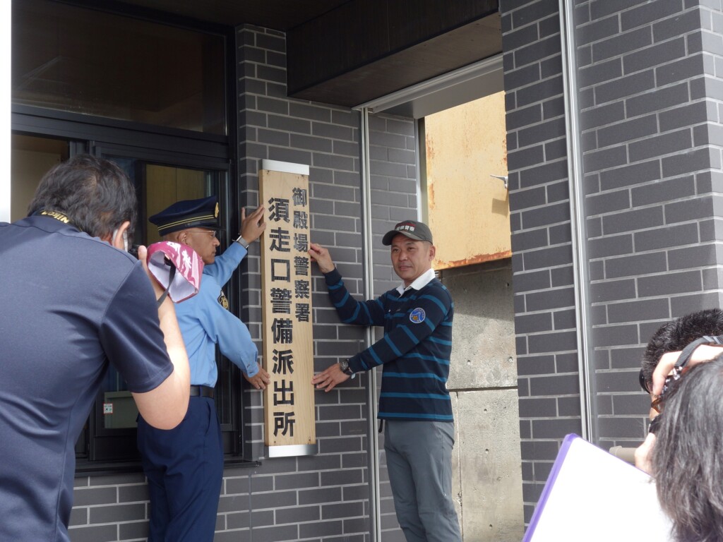 - 御殿場警察署は富士山須走口五合目インフォメーションセンターに臨時警備派出所を開所しました。派出所入口に『須走口警備派出所』の看板を掲出し、山岳遭難救助隊員は富士山のパトロールに出発しました。
