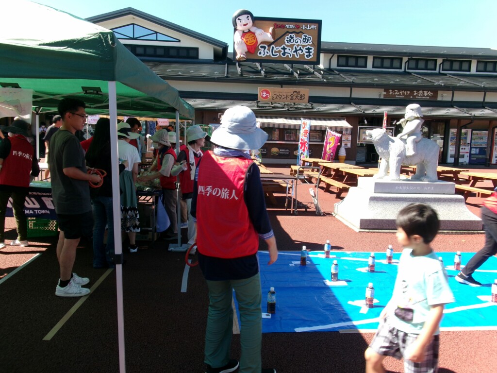 2024年8月17日 道の駅ふじおやま県民の日イベントが開催されました 2024年8月17日(土)9:00から道の駅ふじおやまイベント広場で県民の日イベントが開催されました。静岡小山案内人「四季の旅人」による、富士登山輪投げ、ポストカードの配布、道の駅ふじおやまによる、玉ねぎ詰め放題、朝採りトウモロコシの販売が人気でした。他にも山下珈琲の出店もあり、家族連れなどがイベントを楽しんでいました。 次の記事へ 前の記事へ