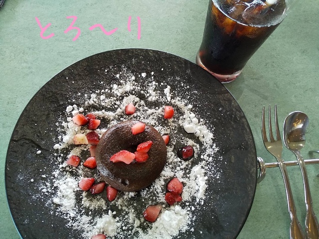- イチゴが散りばめられたお皿にのったフォンダンショコラ。しっとりとした生地の中からチョコがとろ~り。飲み物とセットで680円(税込)と、とってもお得。目の前に広がる大きな窓から富士山を見ながら、カフェ感覚でスイーツを味わってみてはいかがですか?夏にはかき氷、秋にはモンブランなど、季節メニューもあり、季節ごとに訪れてみるのもおすすめです。ランチもご利用いただけます。