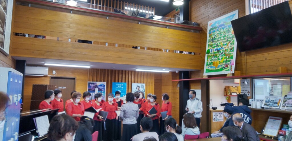 - 令和5年3月25日(土)、駿河小山駅ホームに咲く早咲きの「金太郎さくら」、見頃は過ぎてしまっていましたが、駿河小山駅前交流センター内では色々な催し物が行われました。