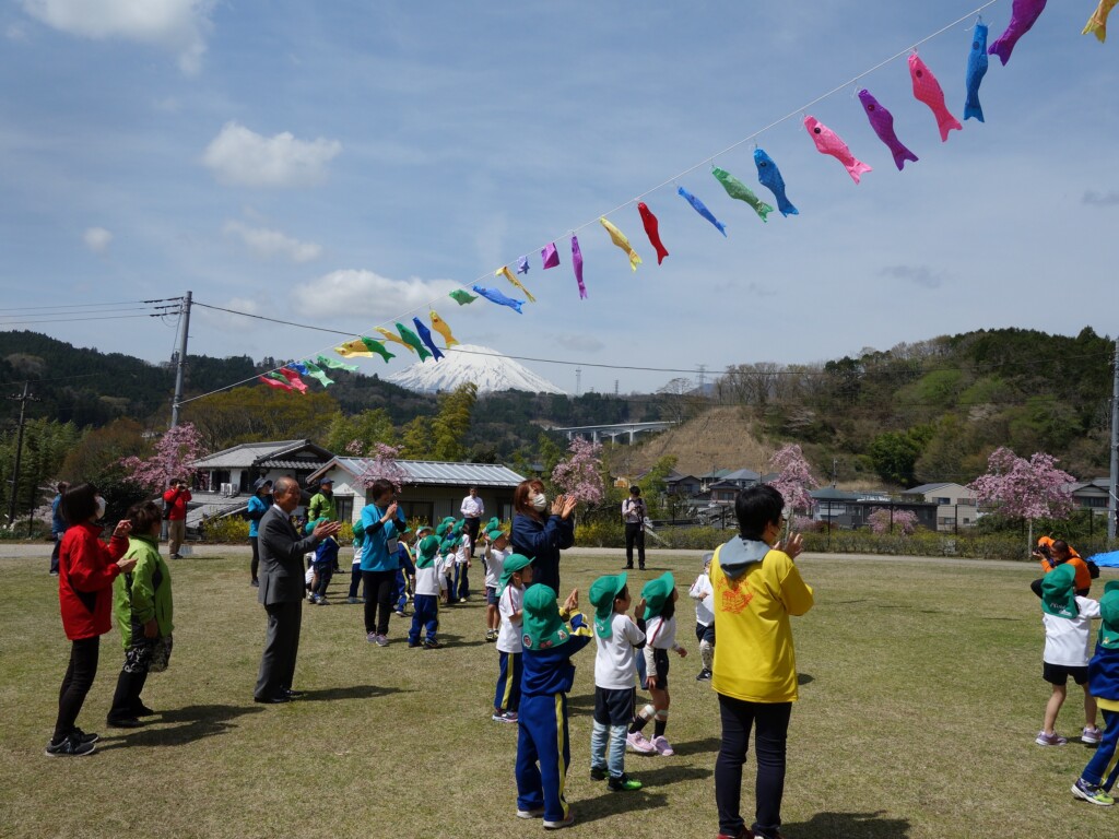 2024年4月12日 鯉のぼりが泳いでいます 小山町役場裏鮎沢川と金時公園に鯉のぼりが掲揚されました。金時公園では、するがおやまこども園とすがぬまこども園の年長児が自分のなまえの入った鯉のぼりを手に取り、ひもに取り付けました。園児たちは鯉のぼりが一斉に高くあがると、手をたたいて喜び、鯉のぼりの下で、「こいのぼり」の歌を元気よく歌っていました。こどもたちが健やかに育つといいですね。5月6日まで掲揚する予定です。 次の記事へ 前の記事へ