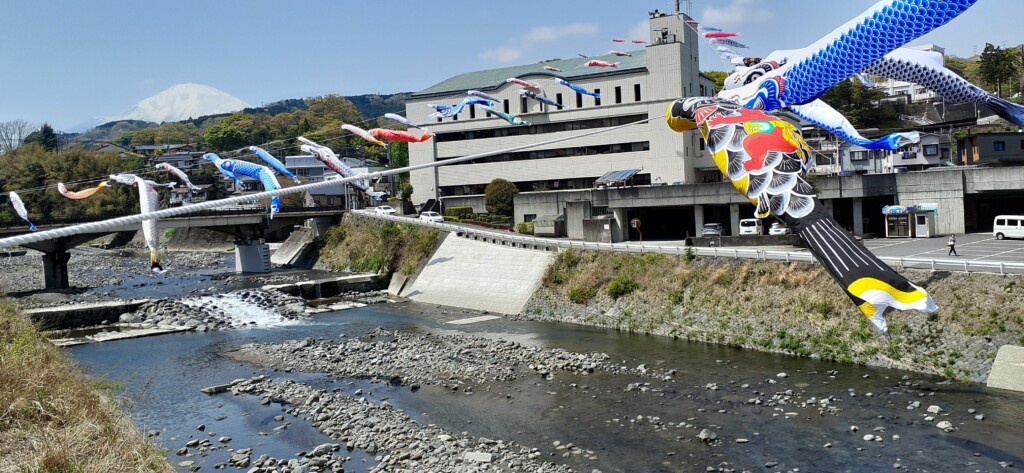 2023年4月11日 鯉のぼりが泳いでいます 小山町役場裏の鮎沢川上空と金時公園に鯉のぼりが泳いでいます。金時公園には、町立するがおやま、すがぬま両こども園の年長児が作ったかわいらしい鯉のぼりも元気よく泳いでいます。鯉のぼりがあがるのを見守っていた園児たちは、鯉のぼりが一斉にあがると飛び上がって喜んでいました。子供たちが大きく元気に育ってくれるといいですね。 次の記事へ 前の記事へ